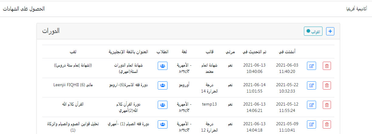 شاشة خاصة لرفع الدورات سهلة ومختصرة
